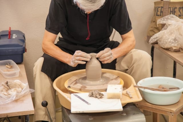 陶芸は、粘土をこねて形をつくり、焼き上げていく。